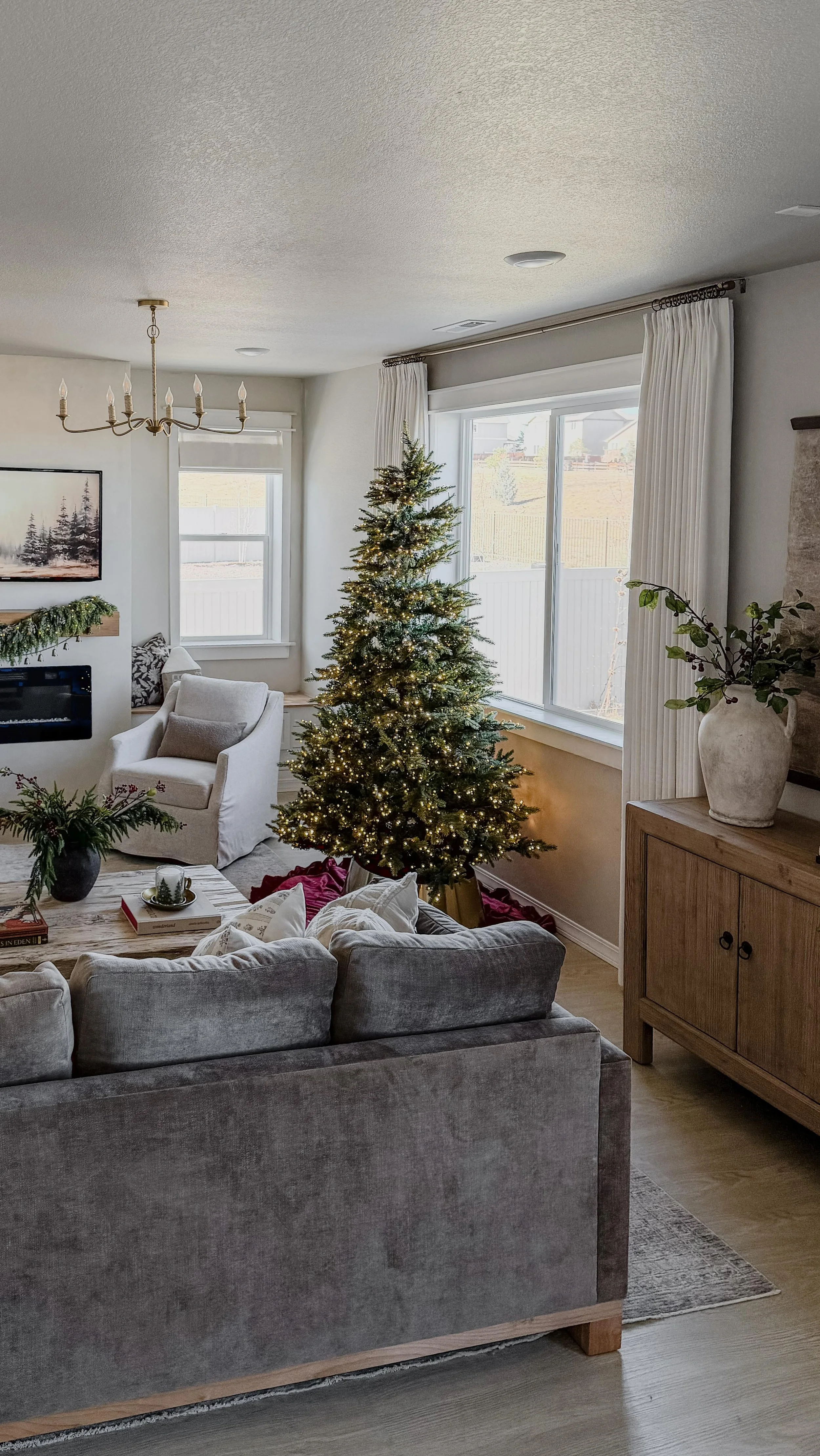 went for a simple look this year using burgundy and brown accents. the brown velvet sectional by @dreamsofaco is truly a dream and probably my favorite upgrade in this space! i got to customize the couch from picking the fabric, to the frame design, to the size and i LOVE how the finished product came together in our living room! โจ